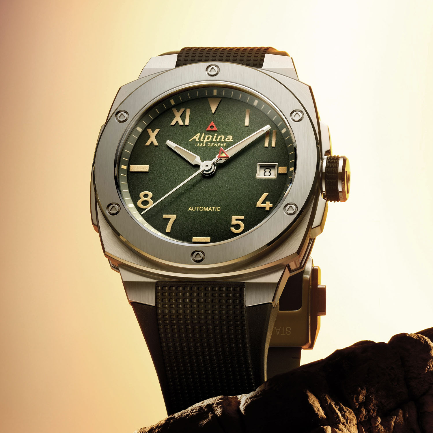 Alpina gained a head start in the sports watch market in 1938 with its Alpina 4, a robust model featuring shock and water-resistant properties, anti-magnetic capabilities, and a sturdy steel case. The heavy-duty Alpiner Extreme, revamped in 2022, is the rightful heir of the Alpina 4. Designed for outdoor adventures, the Alpiner Extreme is also an attractive everyday beater. Available in 41 and 39mm case sizes, the more compact Alpiner Extreme kicks off the autumn with two retro-inspired California dials in green and brown.