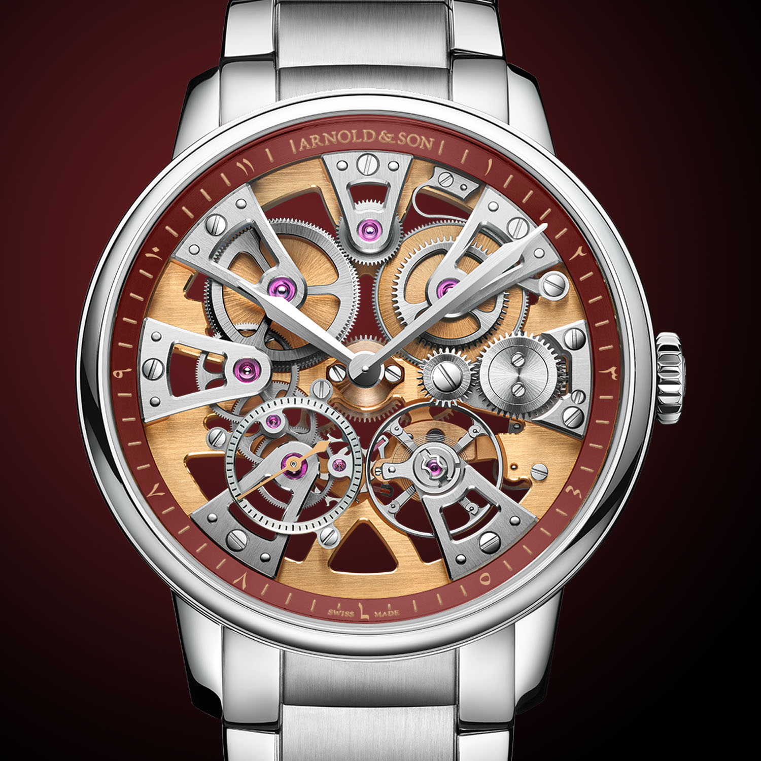 Three wearing options are included: a three-link steel bracelet with a folding clasp, a garnet calfskin strap, and a garnet technical fabric strap (both with steel pin buckles). The Arnold & Son Nebula 40 Steel Ahmed Seddiqi 75th Anniversary Edition is limited to 10 pieces and is priced at AED 101,000 (or about EUR 23,700). More details at www.arnoldandson.com and seddiqi.com.