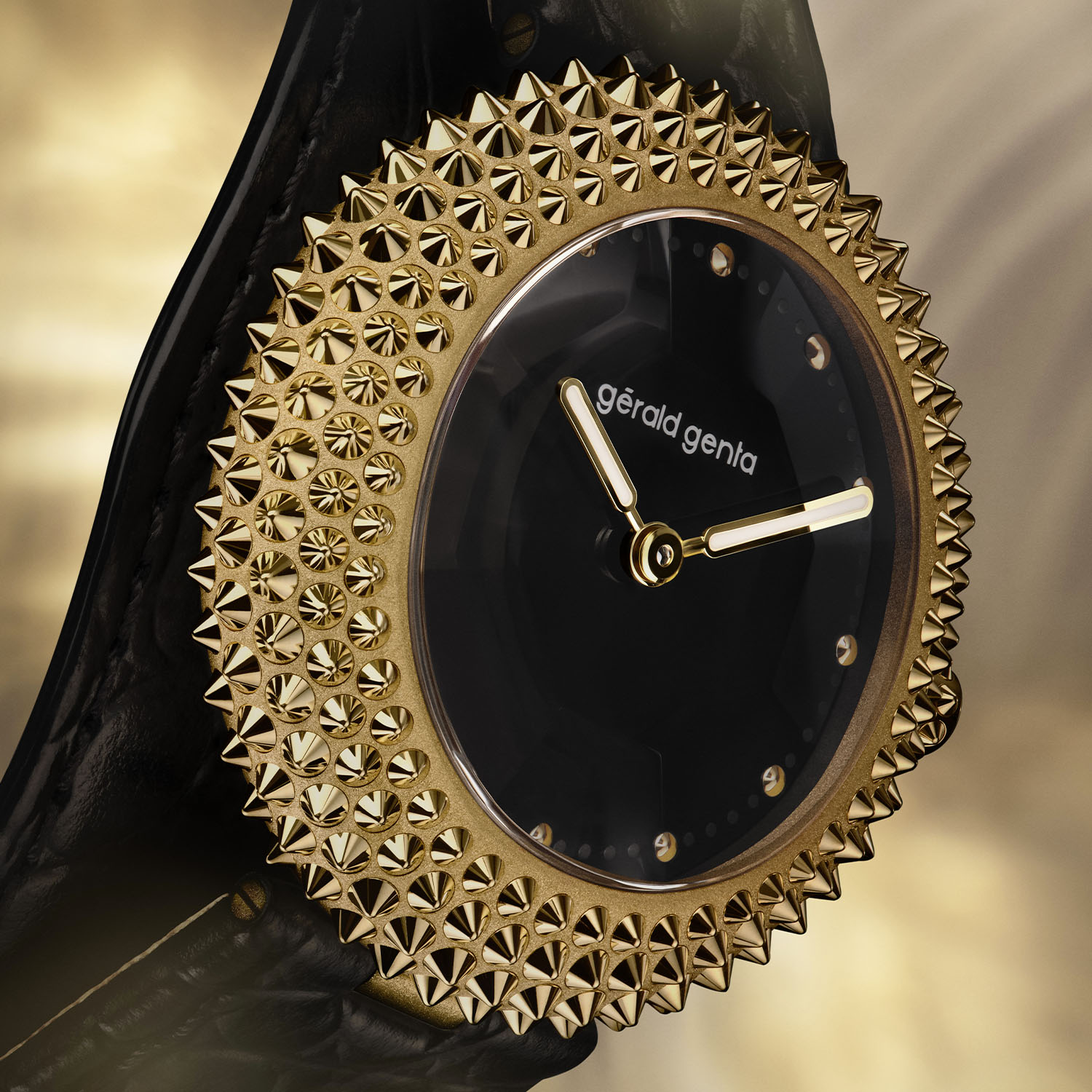 Gérald Genta’s exuberant sea urchin reinterpreted in gold with punky spikes or smooth studs.
