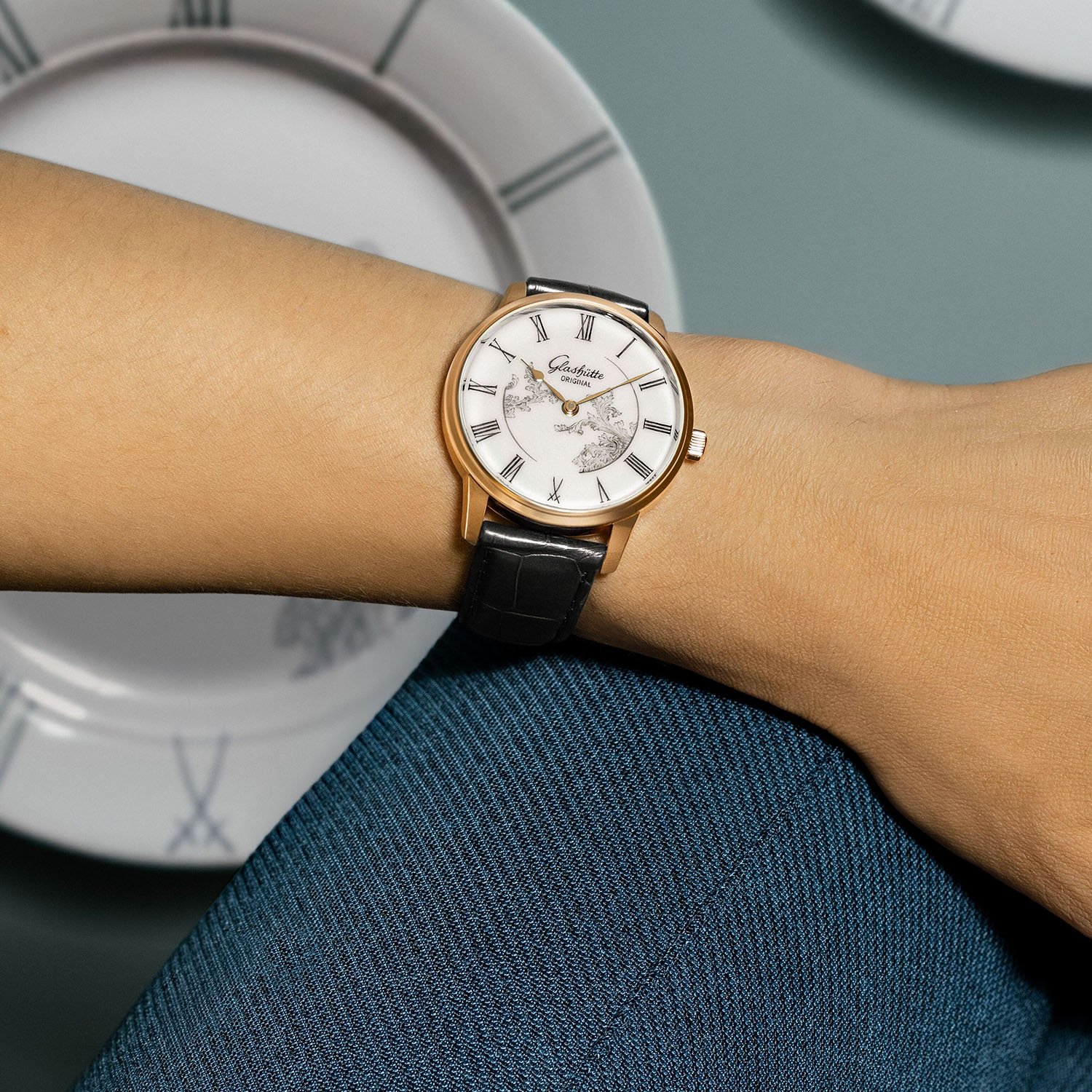 Two Saxon institutions, one renowned for its porcelain and the other for its precision, come together on a shared canvas. To mark 180 years of watchmaking in Glashütte and 315 years of Meissen porcelain, Glashütte Original unveils the Senator Meissen limited editions, a trio of red-gold watches with hand-painted porcelain dials; timepieces that are as much miniature artworks as they are instruments. While the Senator collection is best known for the Panorama Date Moon Phase, Perpetual Calendar and Chronograph Panorama Date, for this new trio, the concept is deliberately restrained, allowing the craft to breathe: hours and minutes only, with curved gold hands, and dials that carry all the visual drama.