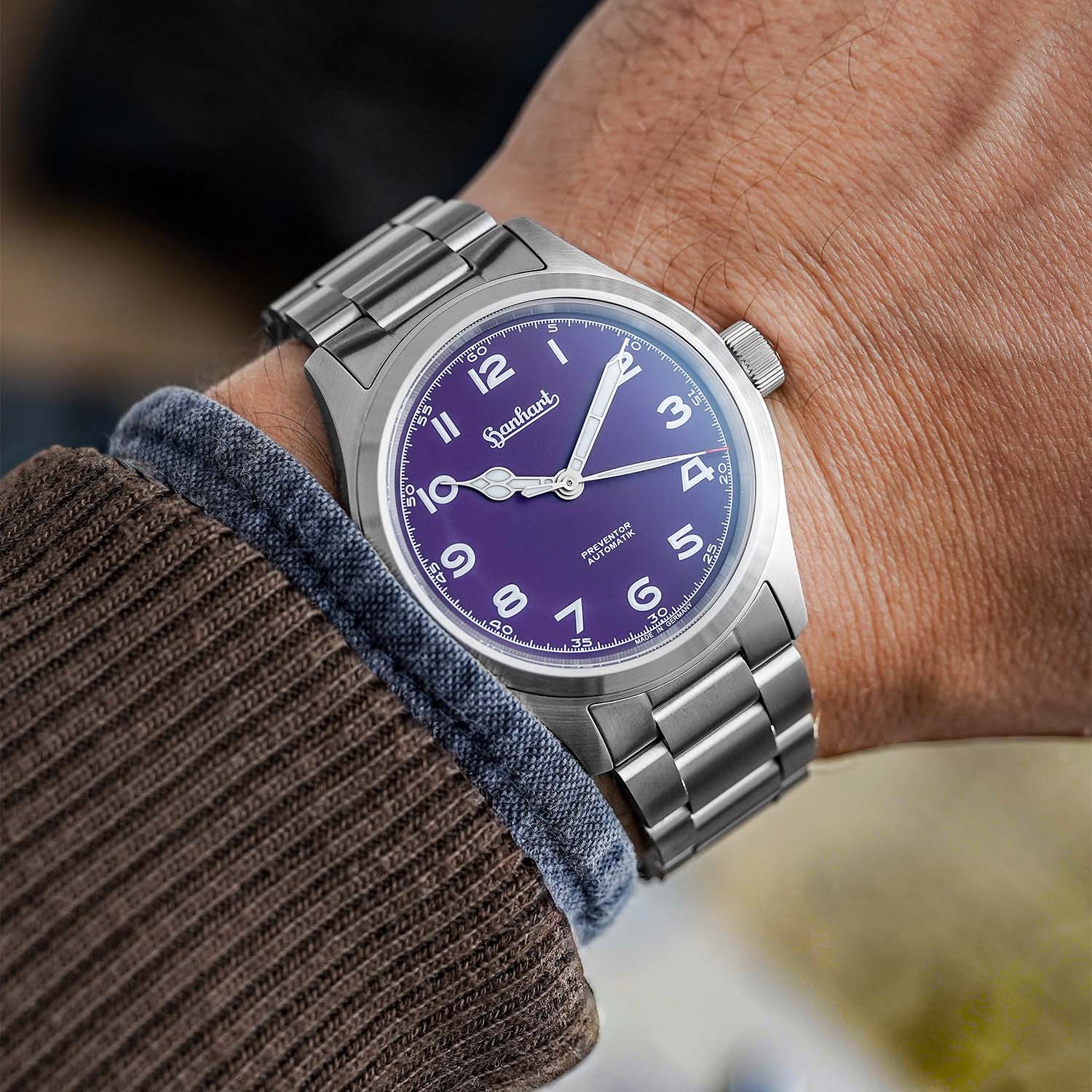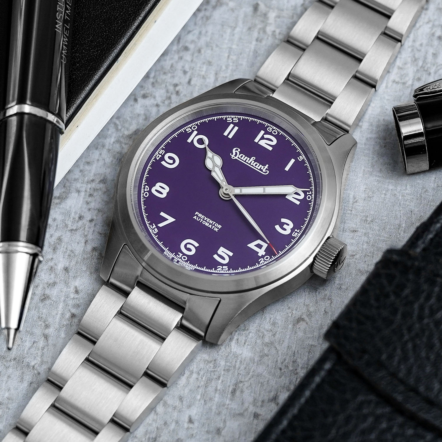 The everyday watch, the one-watch collection… A timepiece that blends ruggedness with refinement, capable of moving seamlessly from the office desk to the mountain trail. This is what Hanhart set out to achieve with the Preventor HD12, introduced in 2024 as the brand’s vision of a modern, go-anywhere, do-anything timepiece. Compact, scratch-resistant and deliberately simple, it quickly became one of the brand’s bestsellers. Now, Hanhart introduces a new special edition, the Preventor HD12 Silk Purple, which carries the technical strength of the original, but with a matte purple dial that adds individuality to an already robust tool watch.