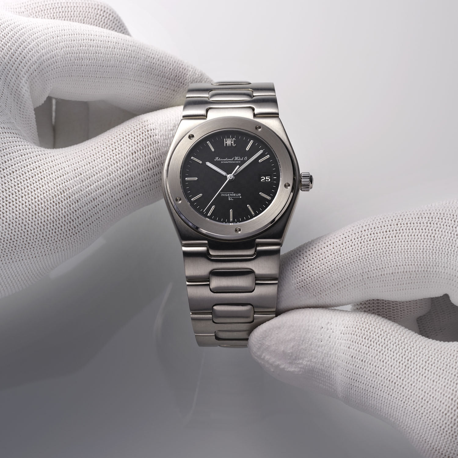 The selection within the IWC. Curated. offering is not limited to a certain period of production or based solely on one criterion, such as rarity. We are taking a much more holistic approach. Some watches may be relevant because of their historical significance, such as the Mark 11, a navigator’s wristwatch IWC developed in 1948 for the British Royal Air Force. Other watches may stand out for their functionality, like the IWC Porsche Design Compass Watch, which combines a mechanical movement with a compass. Some pieces may be chosen because of their design, such as the Ingenieur SL, created by Gérald Genta during the 1970s. We may also select watches because they feature specific complications, such as the first IWC double chronograph or the legendary perpetual calendar from Kurt Klaus.