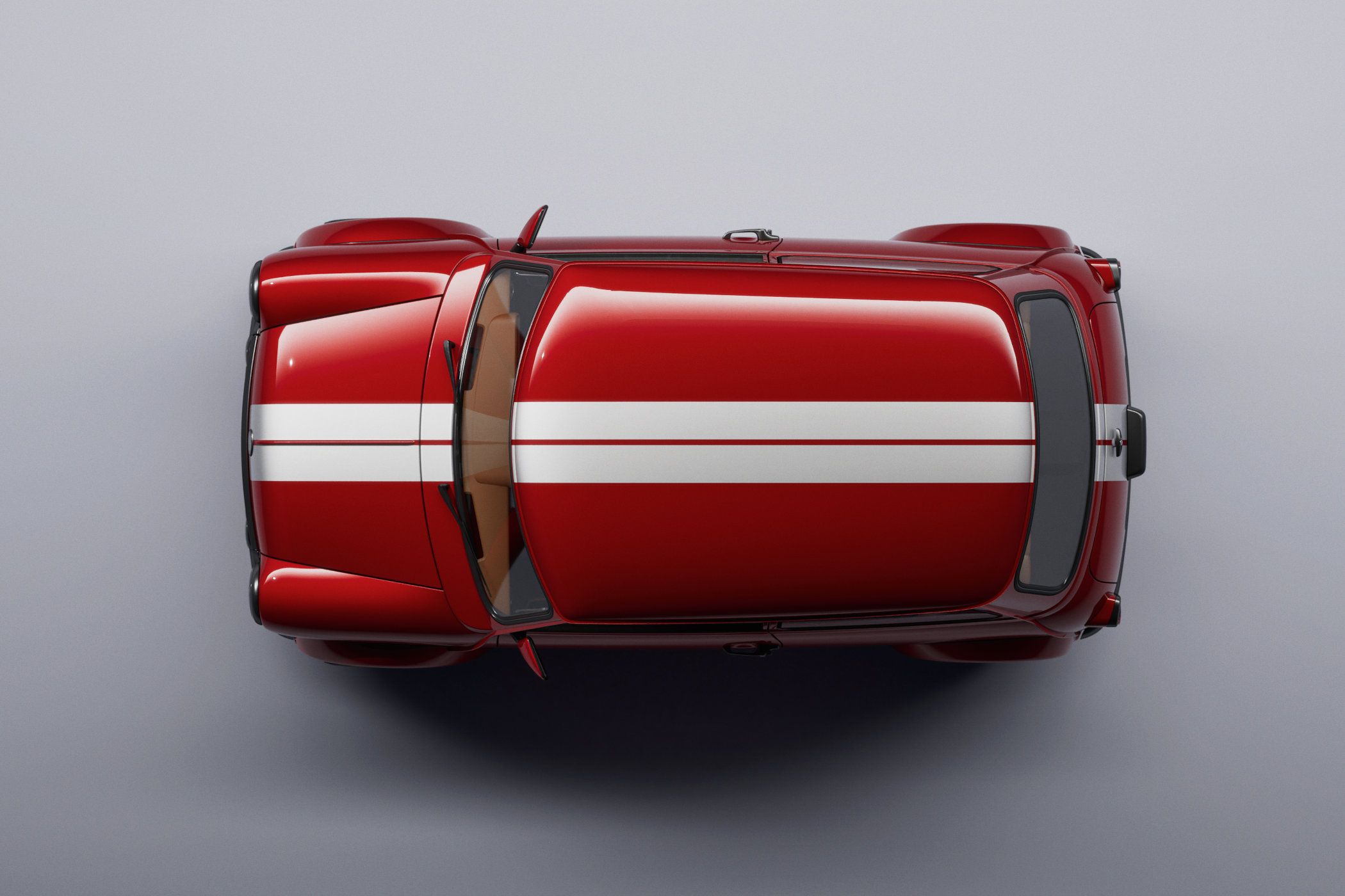 The front splitter is refreshed, with integrated air intakes. The grill is retouched and gets modern headlights and an extra pair of “rally” lights for that added bit of flair. The tucked skirts get some subtle air vents behind the front wheel, and around the back, it gets distinctly modern tail lights. The dual exhaust pokes out from underneath the tucked rear bumper, and it sits on fatter, bigger wheels for a more aggressive stance. Yet, the character of the original Mini has been tastefully retained, as you still have the drip rails front and back, the typical door handles, and that signature silhouette so many people fell in love with over the years.